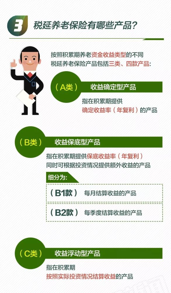 为了满足不同类型客户差异化的需求,丰富客户选择,税延养老保险提供了多种产品设计类型